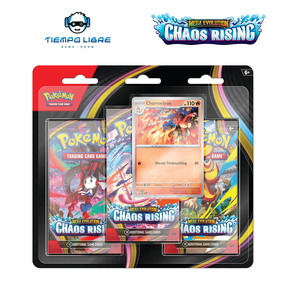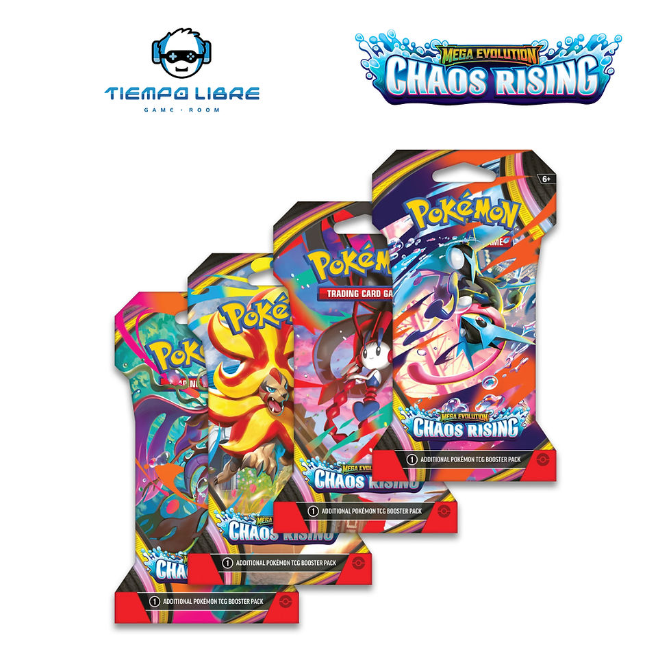 Sobres incluidos: 6 sobres de refuerzo de Pokémon TCG: Mega Evolution—Chaos Rising.